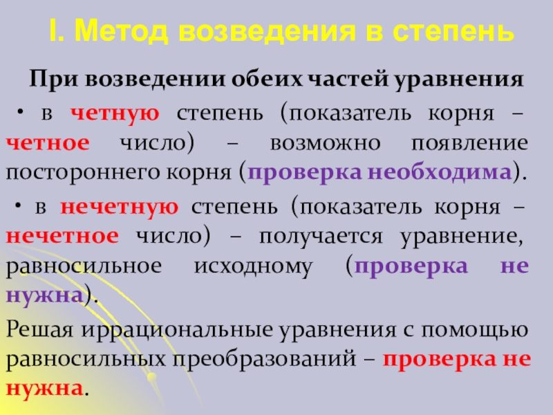 2. Возвести обе части в n-ую степень