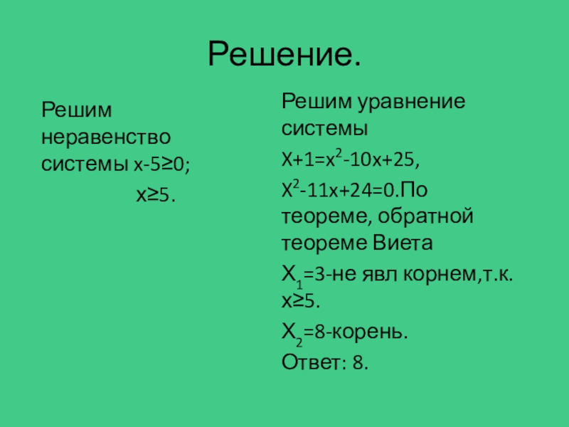 X2-11x+24=0.По теореме, обратной теореме Виета