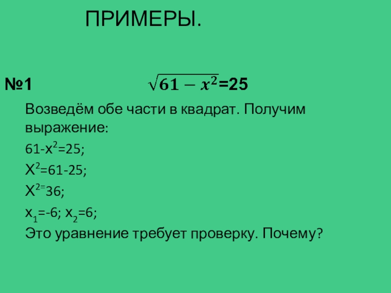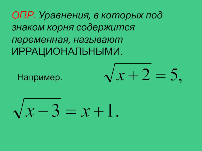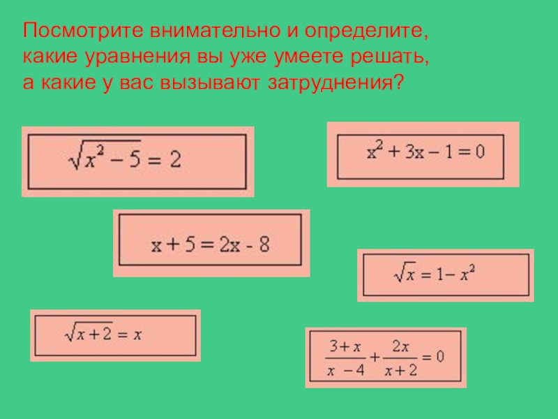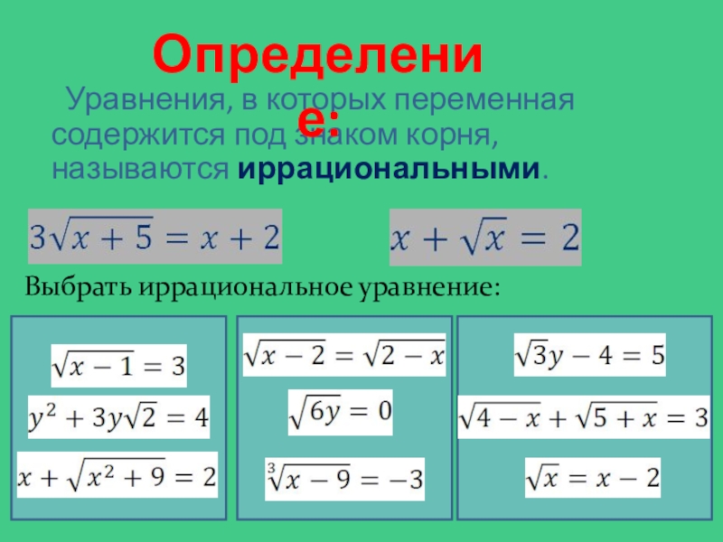 Выбрать иррациональное уравнение: