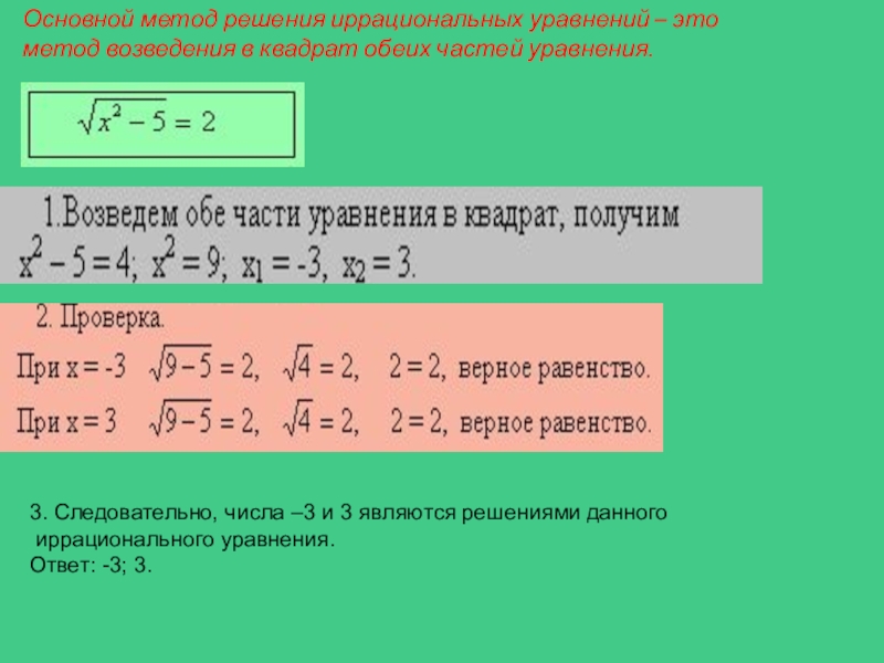 3. Следовательно, числа –3 и 3 являются решениями данного