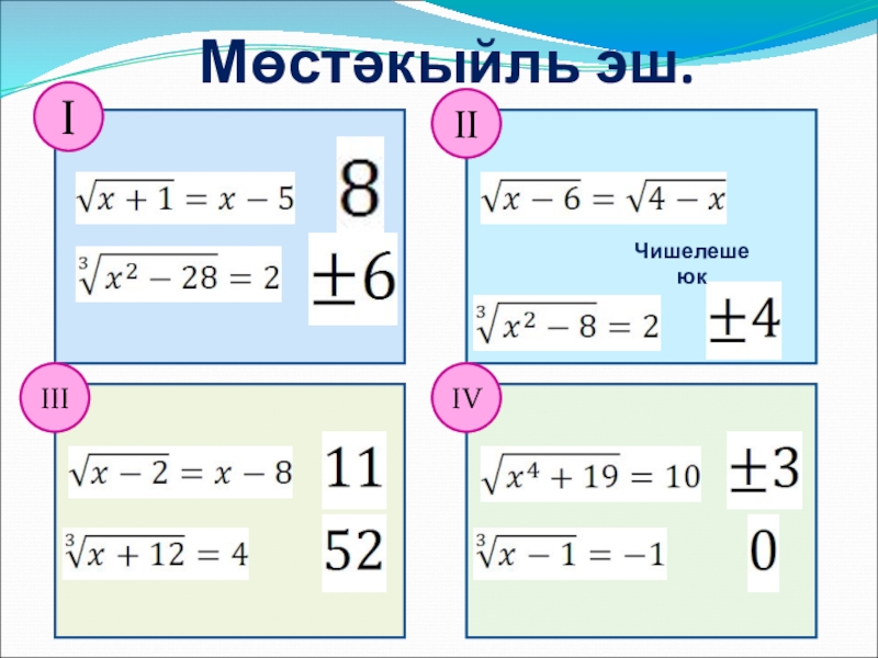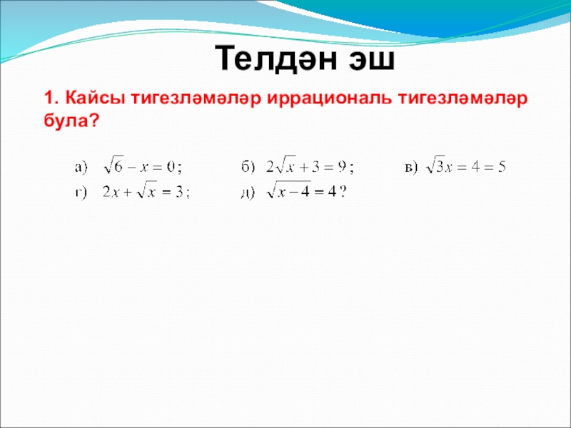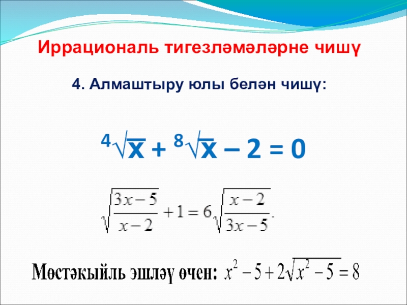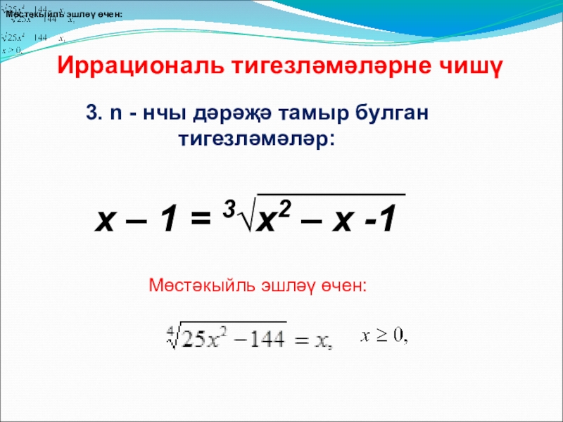 иррациональ тигезләмәләрне чишү күнекмәләрен ныгыту.