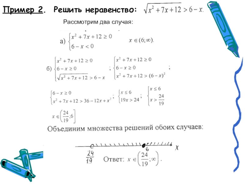 Решением неравенства будет объединение множеств решений обоих случаев.