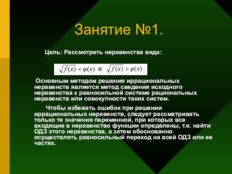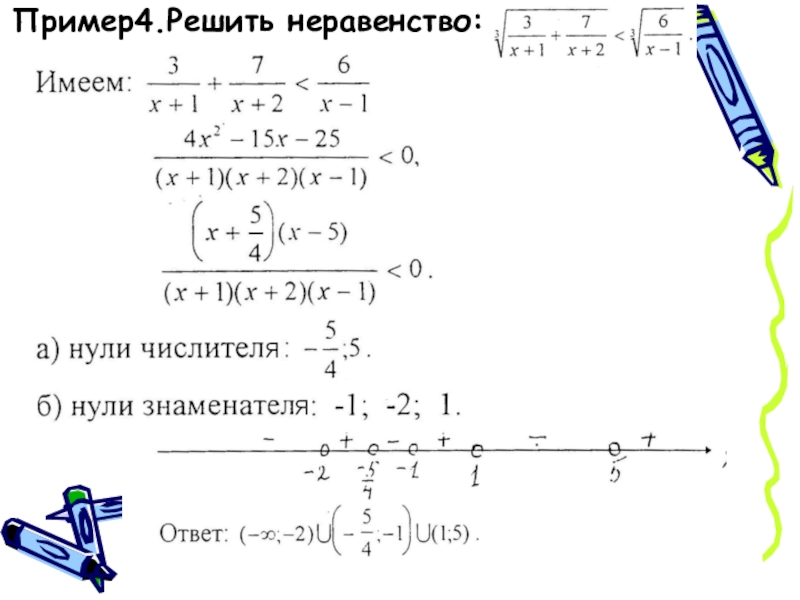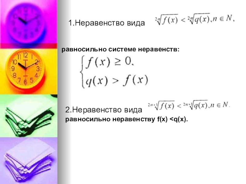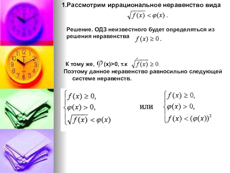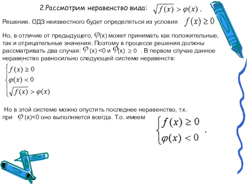 Но, в отличие от предыдущего, (x) может принимать как положительные, так и отрицательные значения. Поэтому в процессе решения должны рассматривать два случая: (x) <0 и (x) . В первом случае данное неравенство равносильно следующей системе неравенств:
