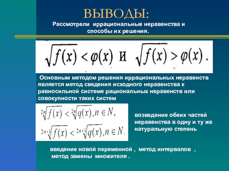 возведение обеих частей неравенства в одну и ту же натуральную степень