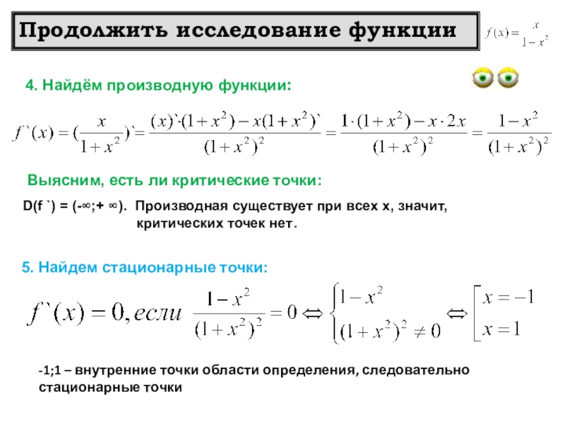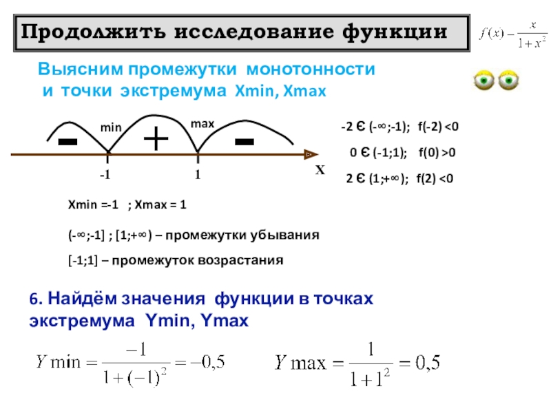 Продолжение алгоритма исследования функции