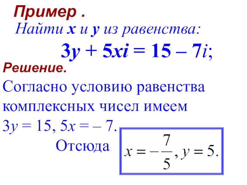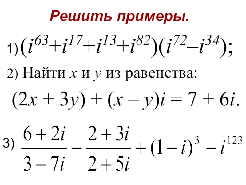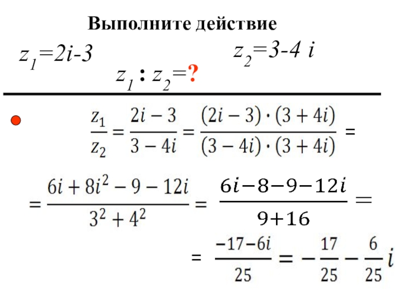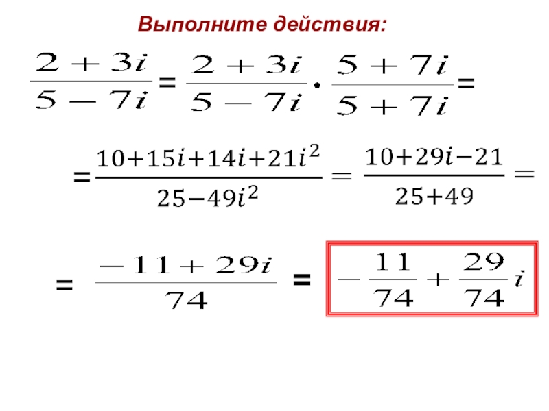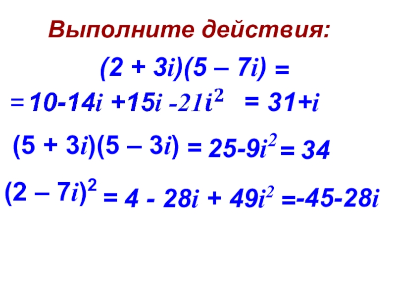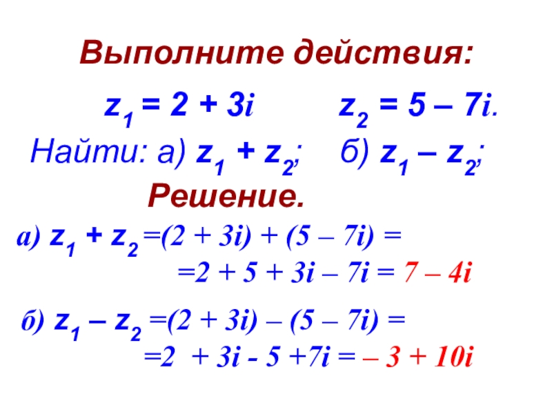 б) z1 – z2 =(2 + 3i) – (5 – 7i) =