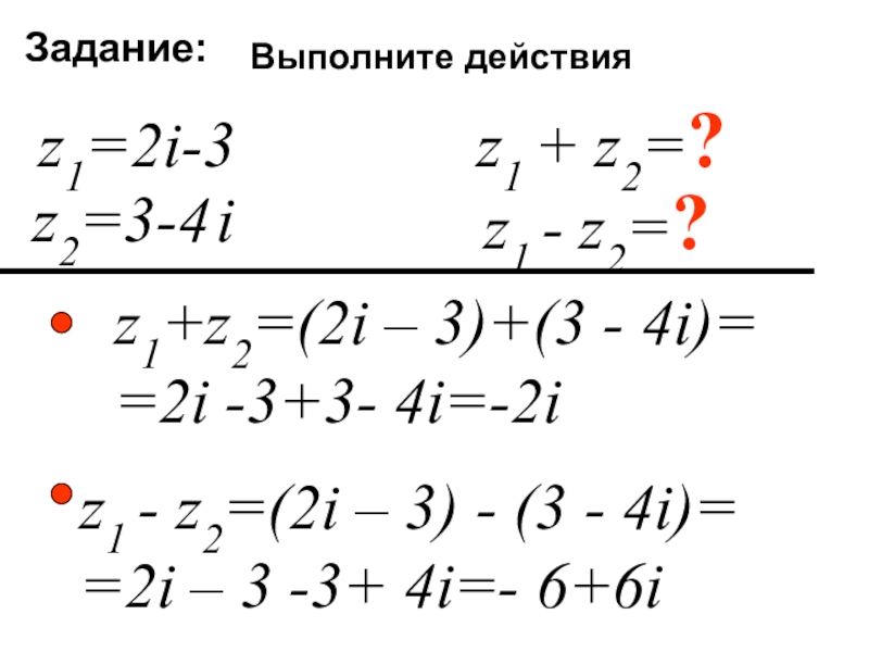 z1 - z2=(2i – 3) - (3 - 4i)=