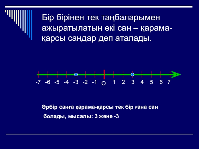 О нүктесі – санақ басы. 0 саны оң да теріс те емес. Ол оң сандар мен теріс сандарды бөліп тұрады.