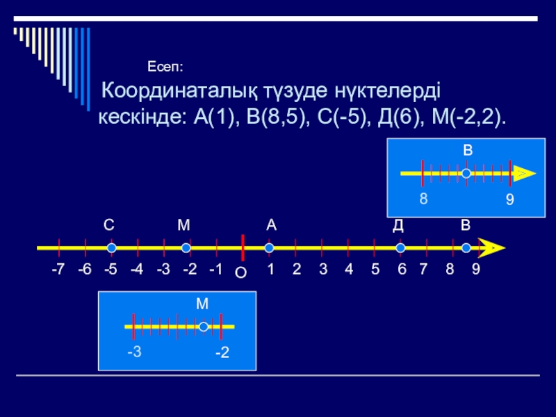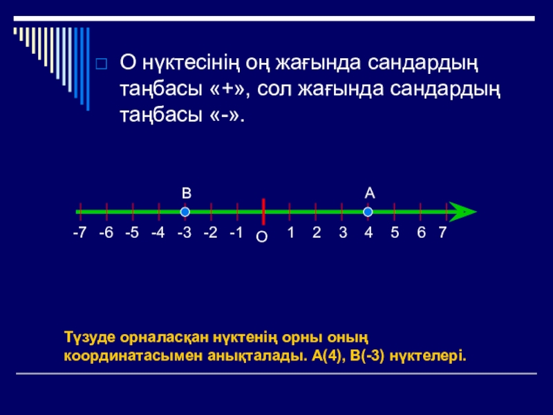 Түзуде орналасқан нүктенің орны оның координатасымен анықталады. А(4), В(-3) нүктелері.