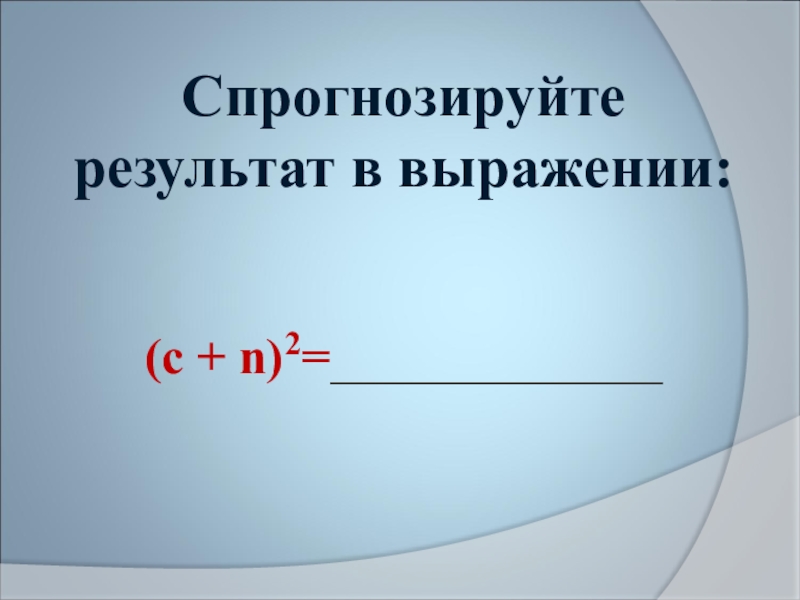 Слайд 4Спрогнозируйте результат в выражении: (c + n)2=_____________