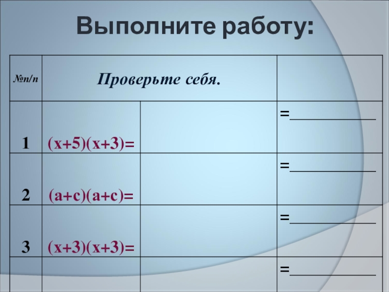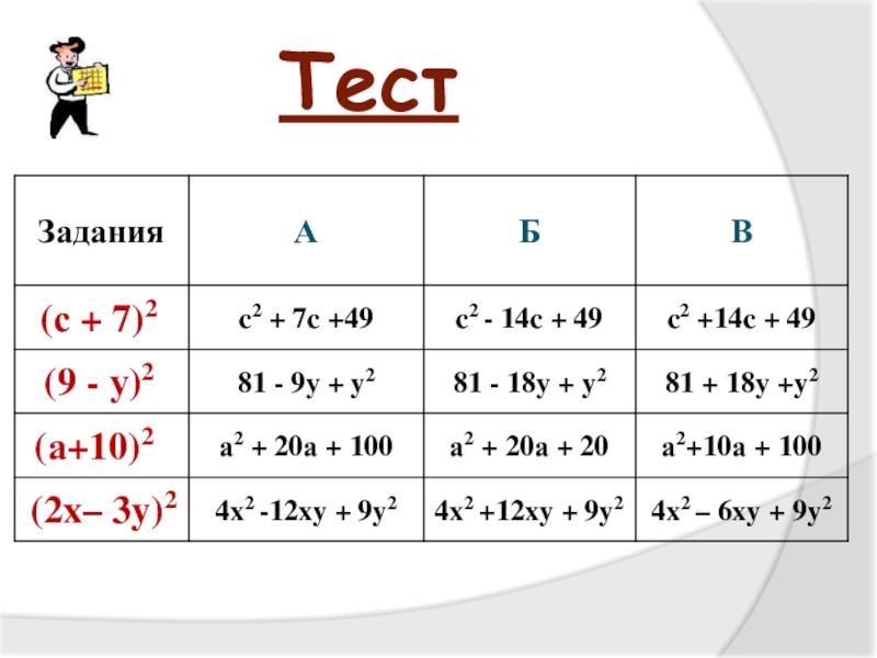 Презентация, доклад по математике на тему Квадрат суммы и разности двух выражений (7 касс).
