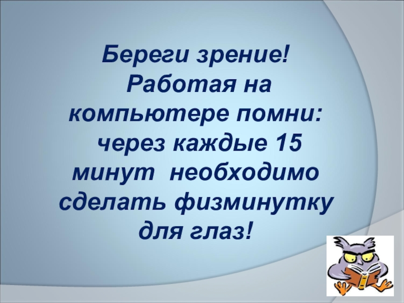 Береги зрение! Работая на компьютере помни: через каждые 15 минут необходимо сделать физминутку для глаз!
