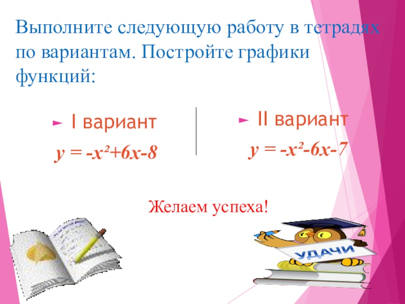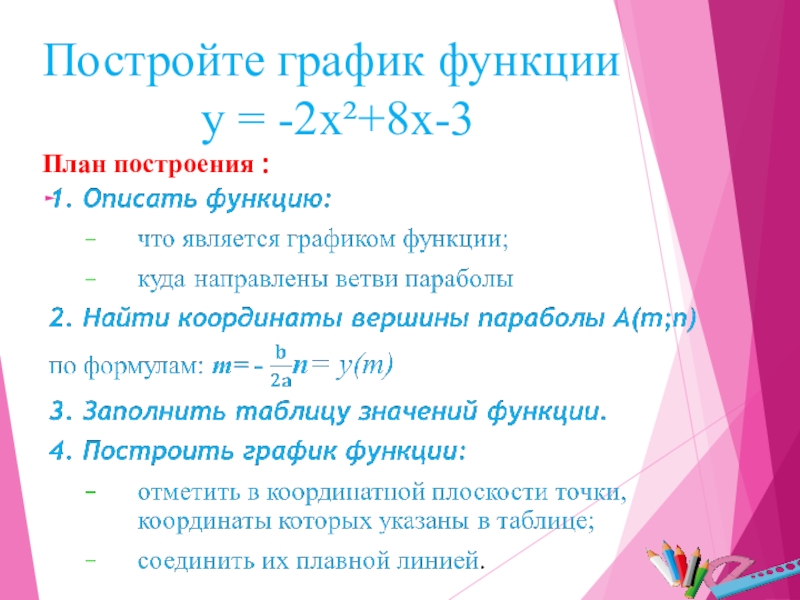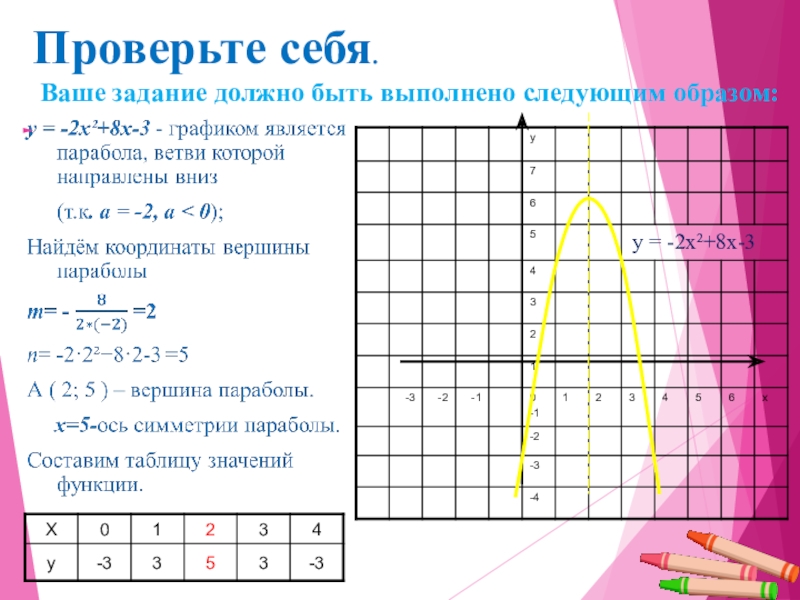 у= -7х²-х+3 – графиком является парабола, ветви которой направлены вниз (т.к. а=-7, а<0).