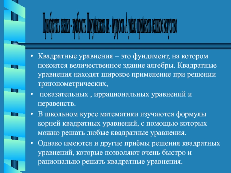 Приобретать знания - храбрость Приумножать их - мудрость А умело применять великое искусство