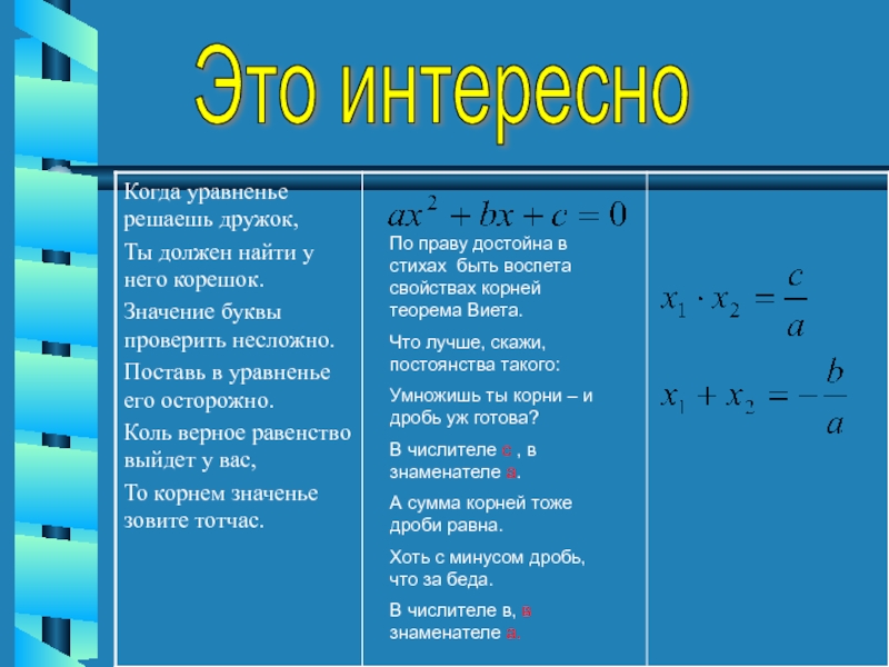 Доказательство. Разделим обе части уравнения на получим приведённое квадратное уравнение