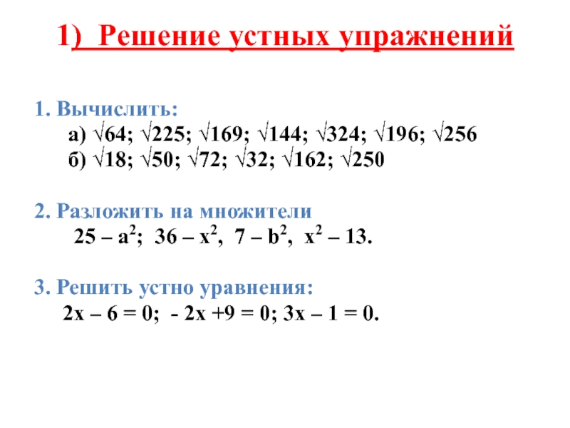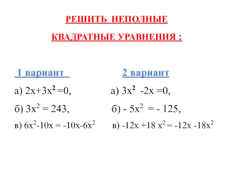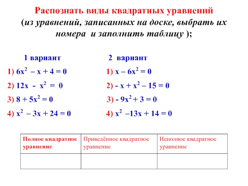 (из уравнений, записанных на доске, выбрать их номера и заполнить таблицу );