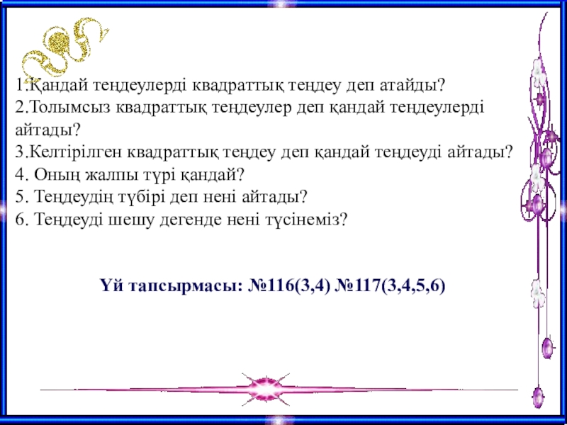Үй тапсырмасы: №116(3,4) №117(3,4,5,6)
