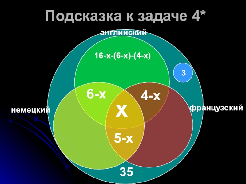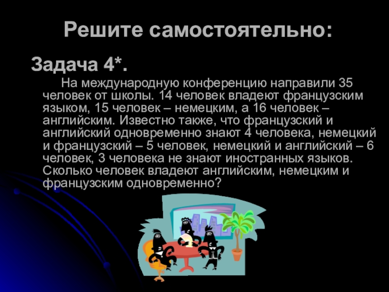 Слайд 23 Всеми тремя языками владеют два человека, значит,