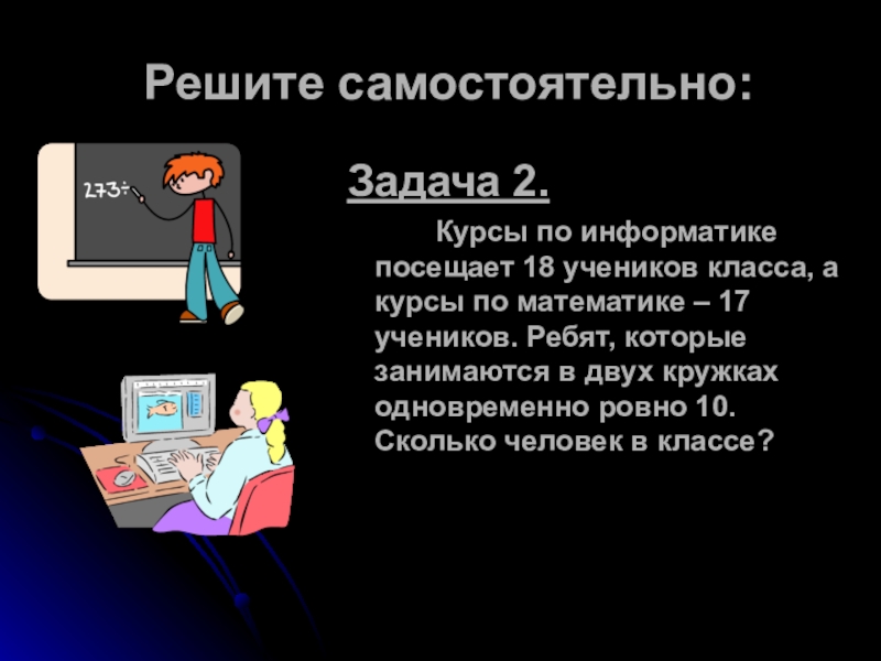 по математике – 17 учеников. Ребят, которые занимаются в двух кружках одновременно ровно 10. Сколько человек в классе?