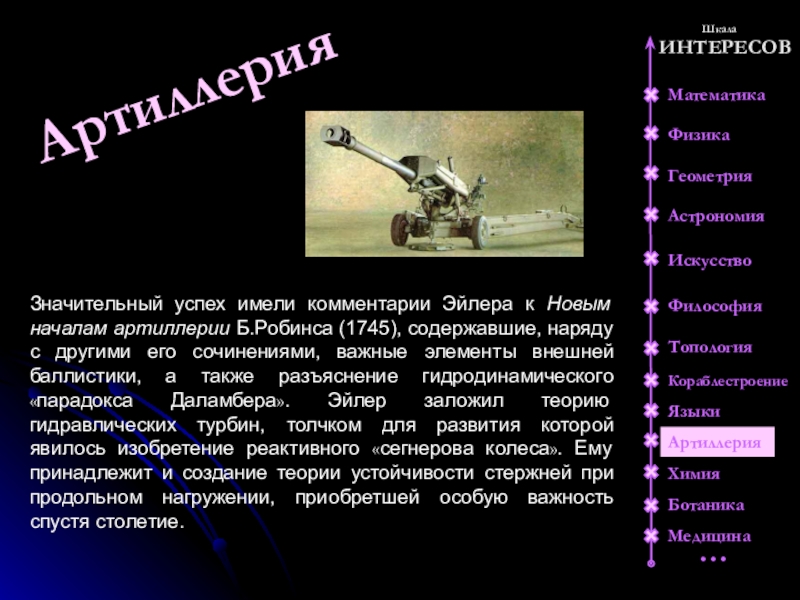 Значительный успех имели комментарии Эйлера к Новым началам артиллерии Б.Робинса (1745),