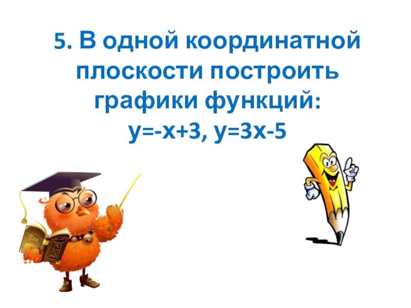5. В одной координатной плоскости построить графики функций:  у=-х+3, у=3х-5