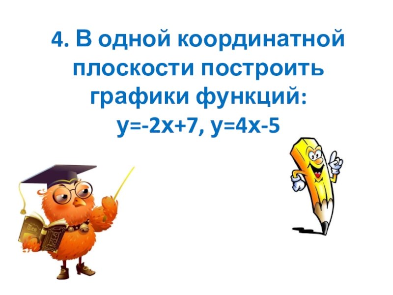 4. В одной координатной плоскости построить графики функций:  у=-2х+7, у=4х-5