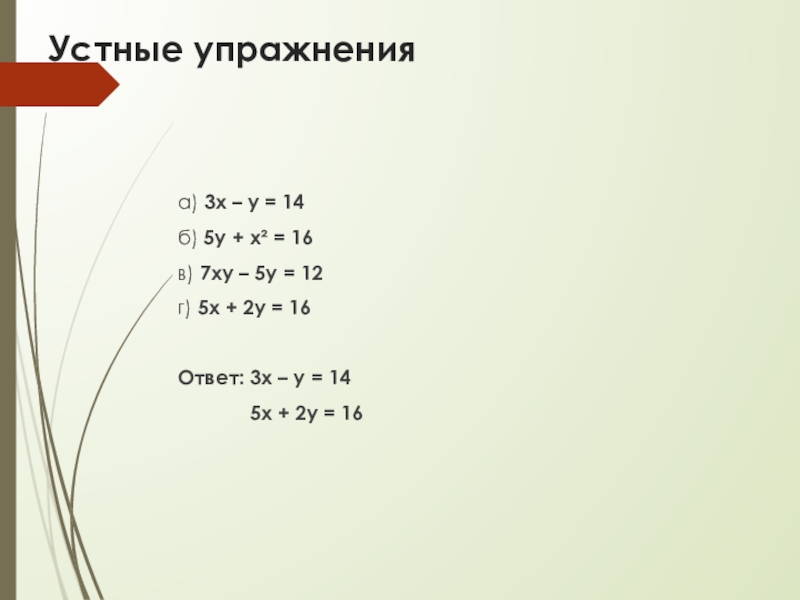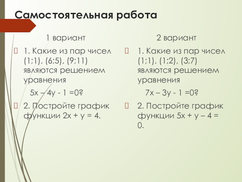 1. Какие из пар чисел (1;1), (1;2), (3;7) являются решением уравнения