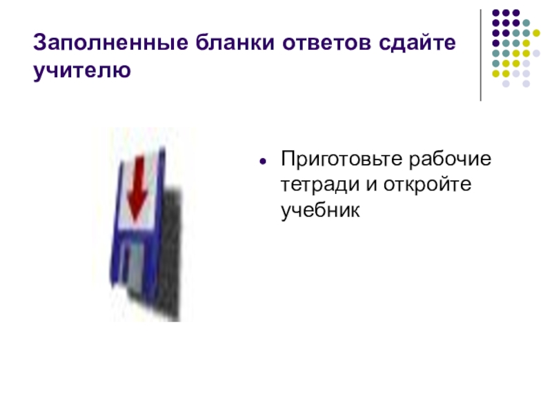 Заполненные бланки ответов сдайте учителюПриготовьте рабочие тетради и откройте учебник