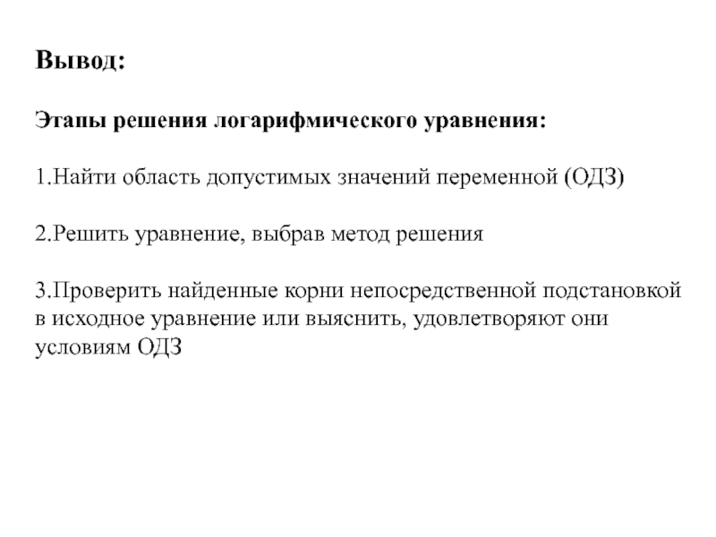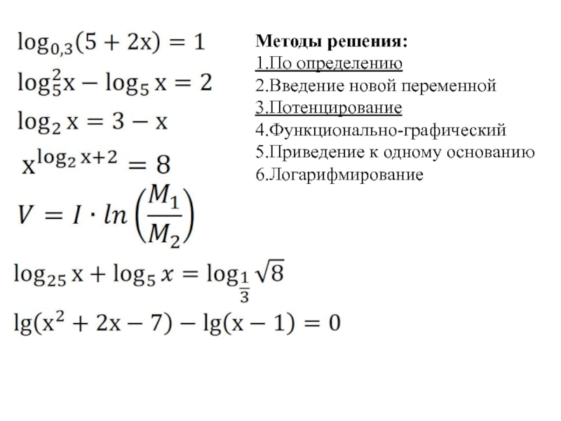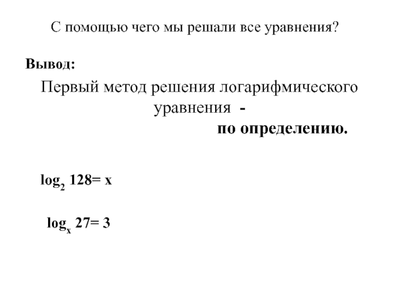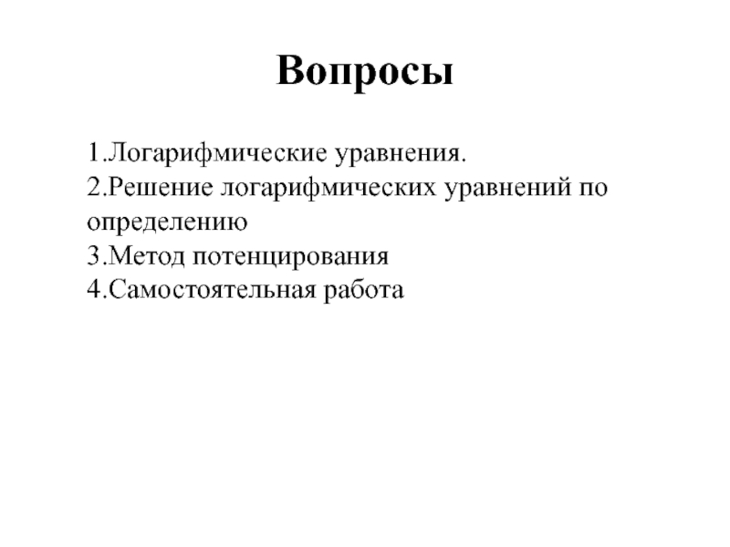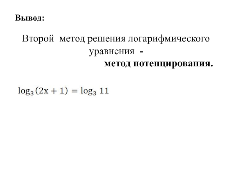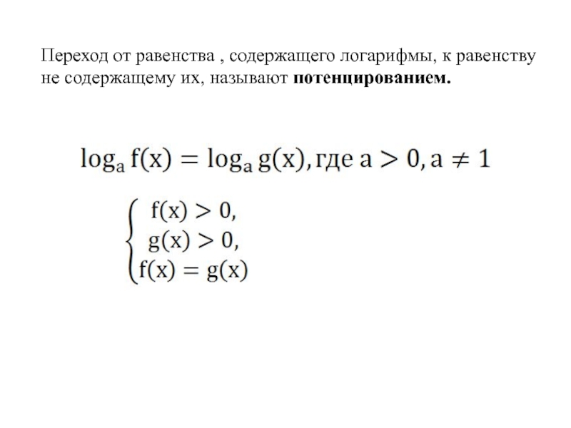 Простейшим логарифмическим уравнением служит уравнение вида , где а >0, a≠1.