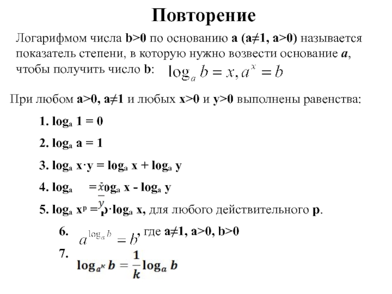 5. logₐ xᵖ = p·logₐ x, для любого действительного p.