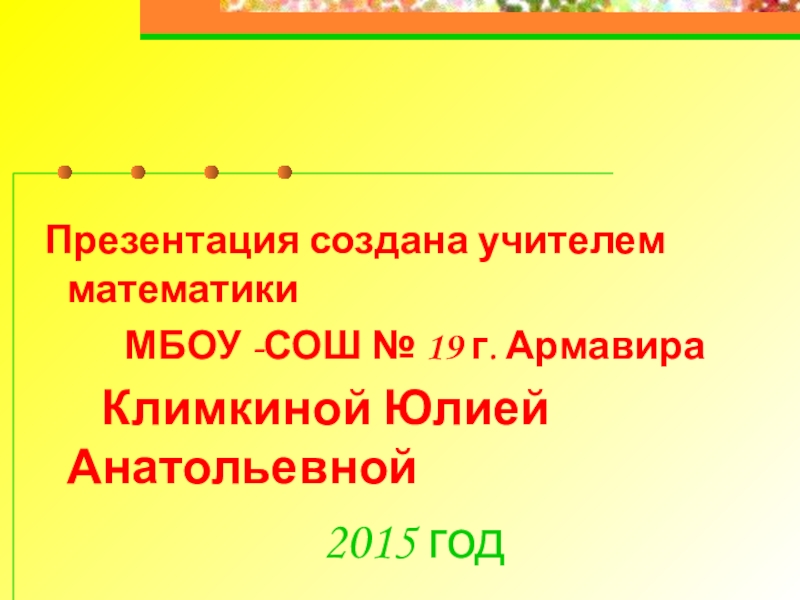 Презентация создана учителем математики      МБОУ -СОШ № 19 г. Армавира