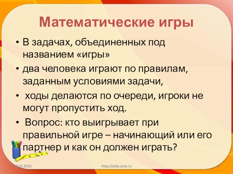 Слайд 2Математические игры