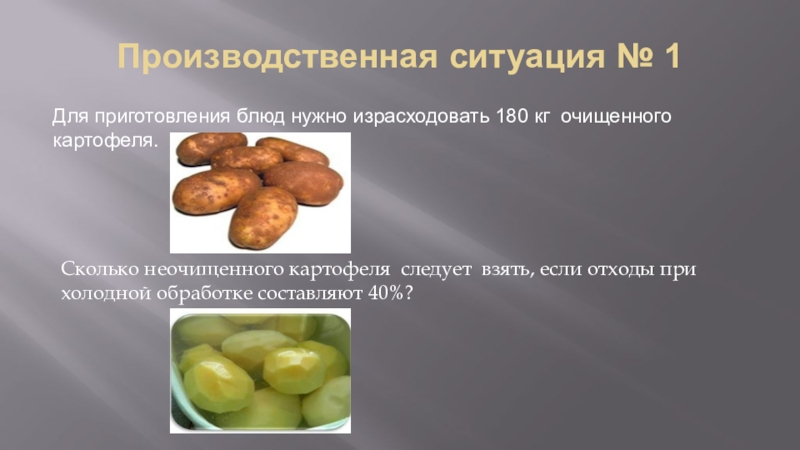 Сколько неочищенного картофеля следует взять, если отходы при холодной обработке составляют 40%?