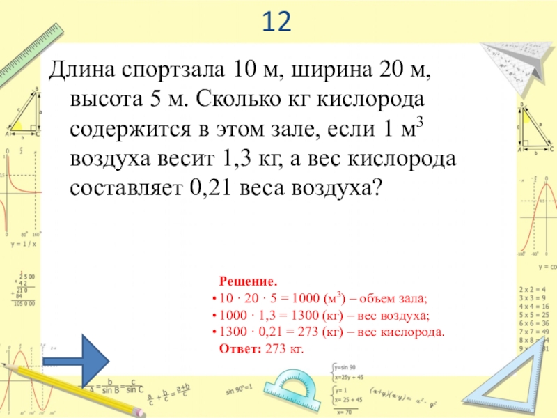 10 · 20 · 5 = 1000 (м3) – объем зала;