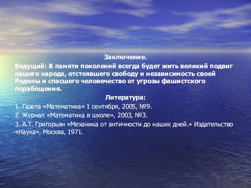 3. А.Т. Григорьян «Механика от античности до наших дней.» Издательство «Наука», Москва, 1971.