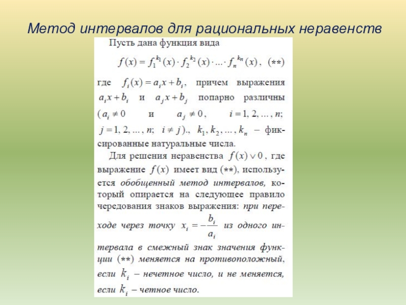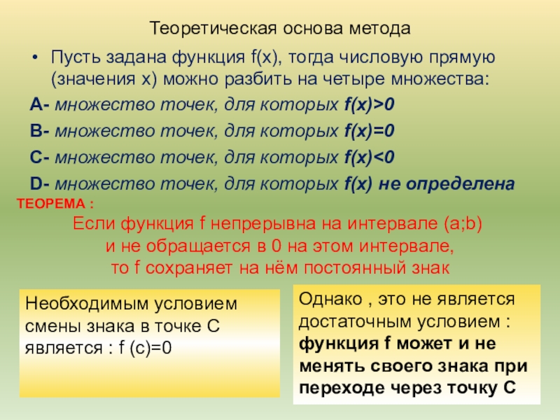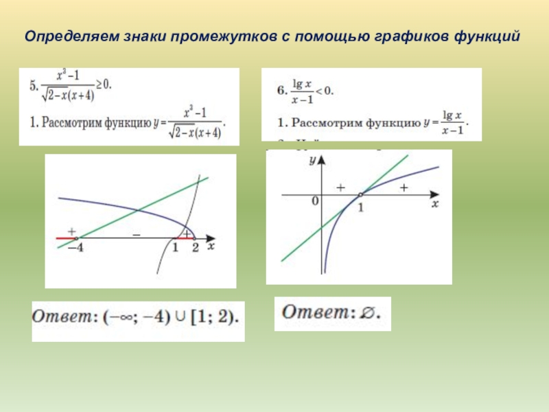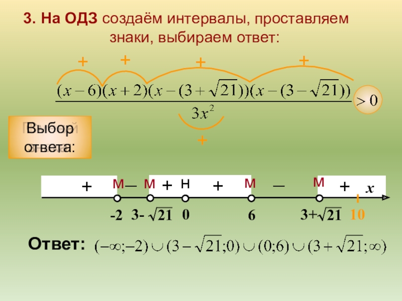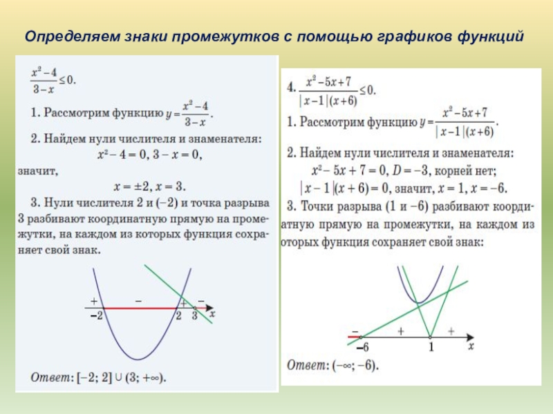 4. Определить знак f(x) в каждом промежутке (подстановкой)