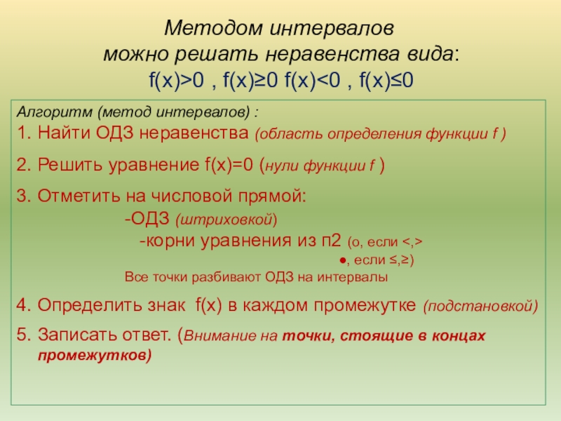 5. Записать ответ. (Внимание на точки, стоящие в концах промежутков)