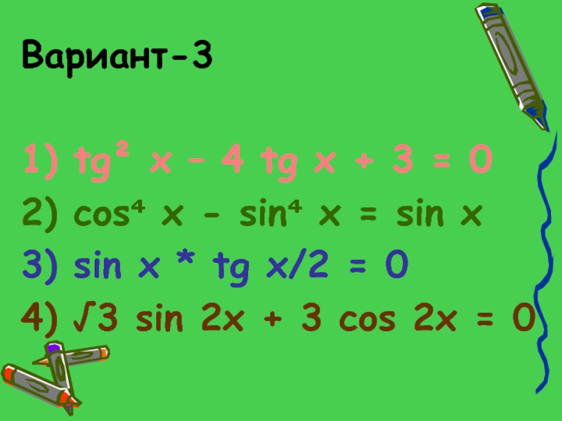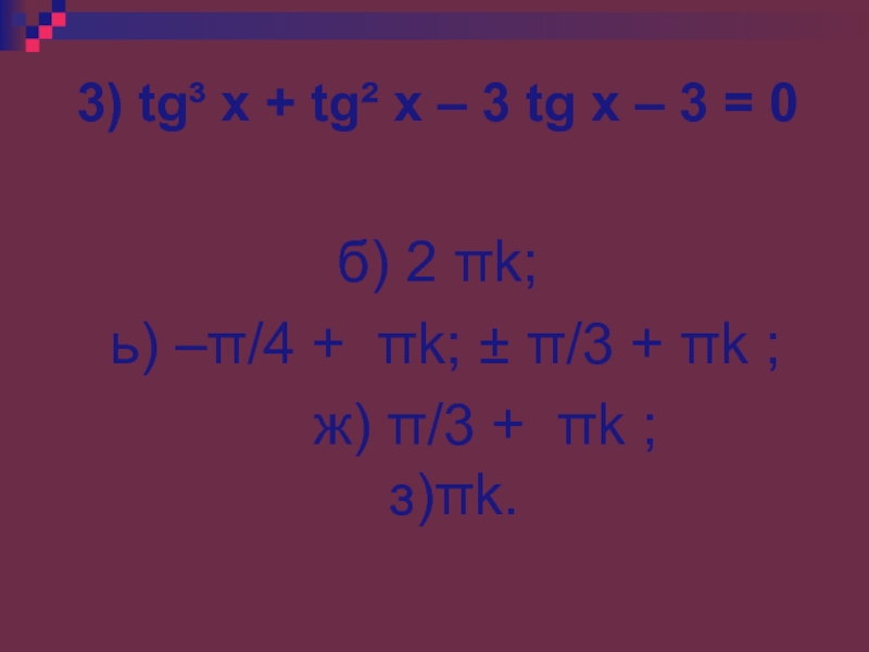 Слайд 483) tg³ x + tg² x – 3 tg x –