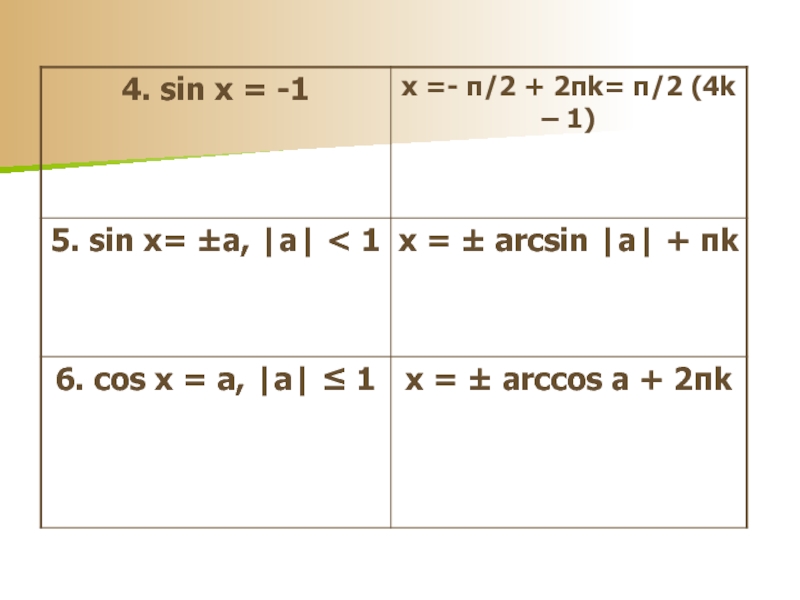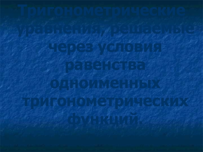 Слайд 33Тригонометрические уравнения, решаемые через условия равенства одноименных тригонометрических функций.