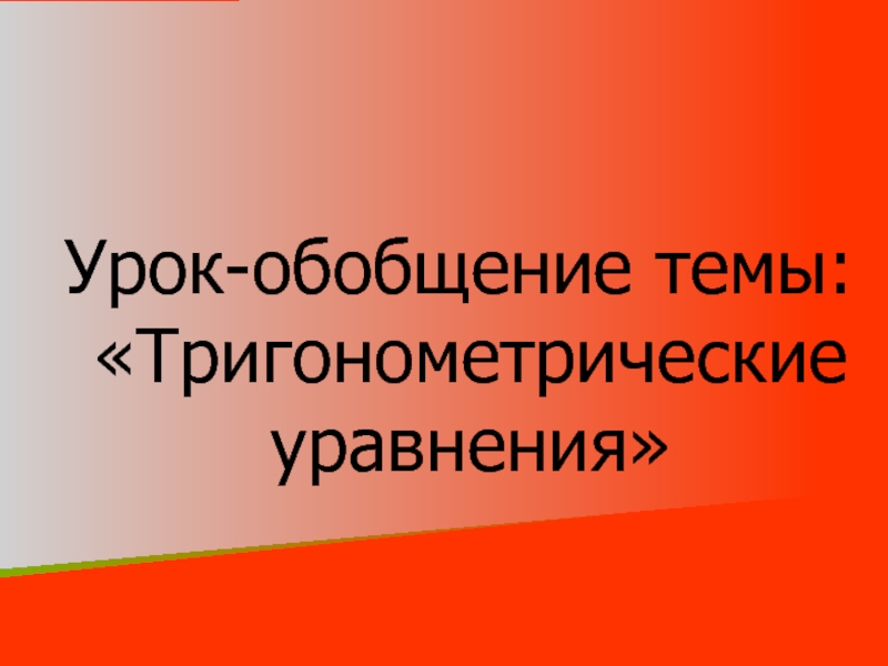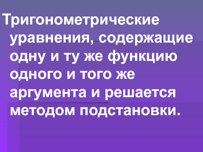 Слайд 27Тригонометрические уравнения, содержащие одну и ту же функцию одного и того
