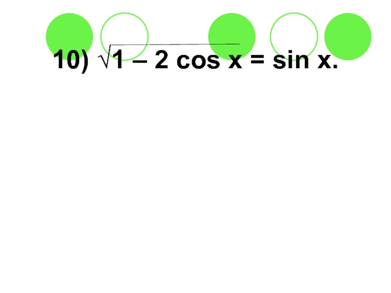 Слайд 5510) √1 – 2 cos x = sin x.