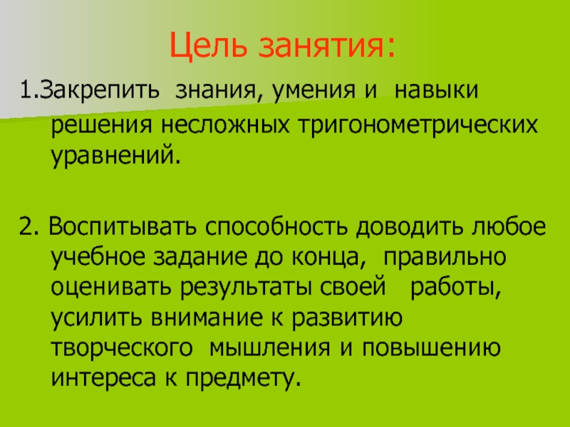 Уметь решать несложные тригонометрические уравнения.
