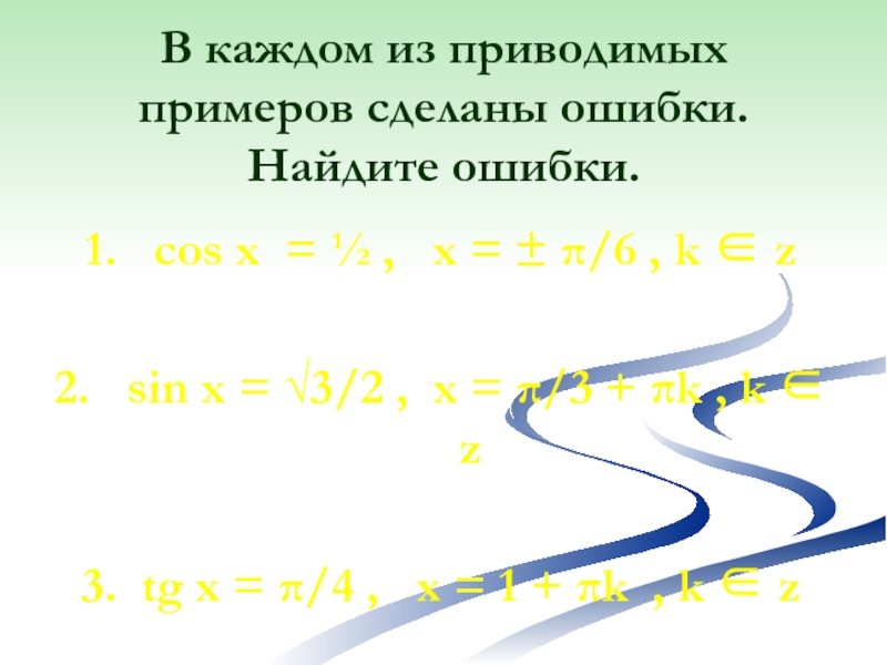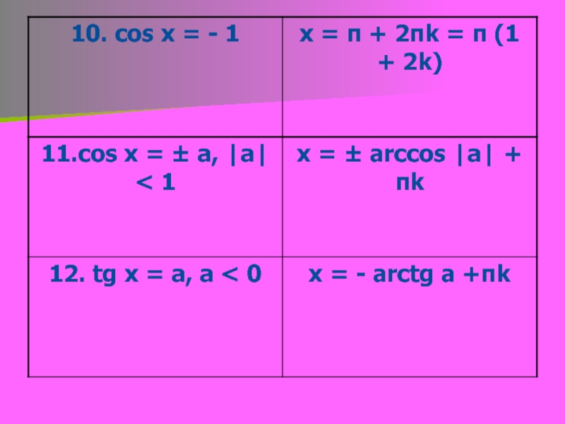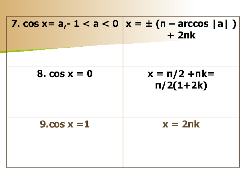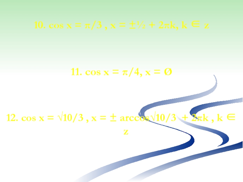 Слайд 2410. cos x = π/3 , x = ±½ + 2πk,