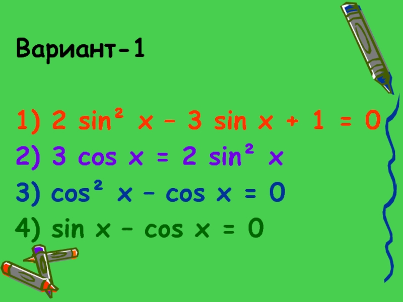 1) 2 sin² x – 3 sin x + 1 =