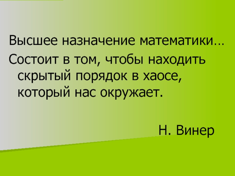 Слайд 2Высшее назначение математики…