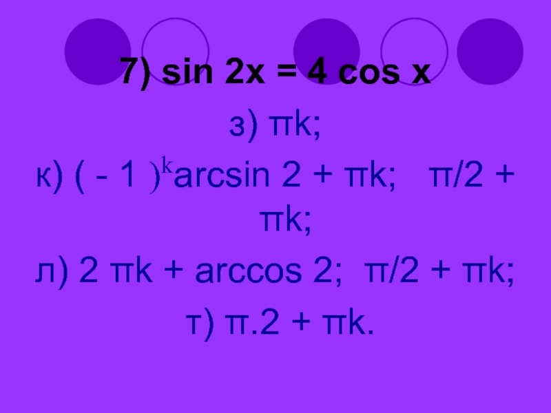 Слайд 527) sin 2x = 4 cos x