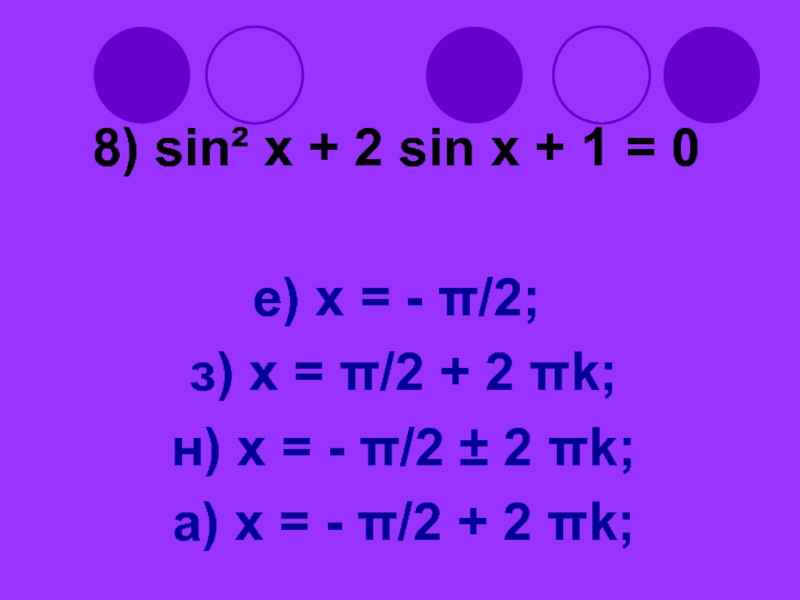 Слайд 538) sin² x + 2 sin x + 1 = 0