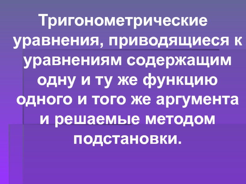 Тригонометрические уравнения, приводящиеся к уравнениям содержащим одну и ту же функцию