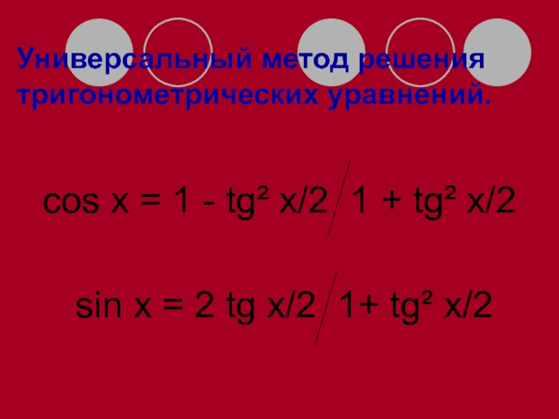 Слайд 41Универсальный метод решения тригонометрических уравнений.