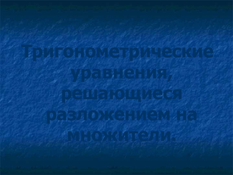 Тригонометрические уравнения, решающиеся разложением на множители.